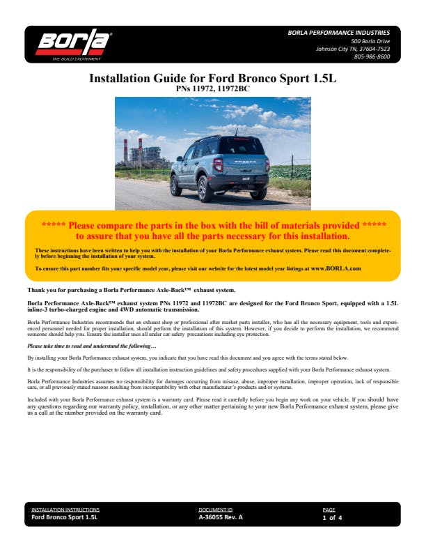 2021-2024 Ford Bronco Sport Axle-Back Exhaust System S-Type Part # 11972 |