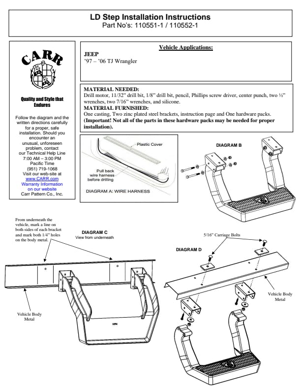 The LD step was Actually inspired by Jeff Carr's wife, Lynn. Hence the name "LD STEP" (Lynn's Design"). This Step will give the user easier access to the vehicle due to the wider and deeper stepping surface which extends further than our other steps. The LD Step in available in three durable finishes, and installation is a cinch with our mounting system.