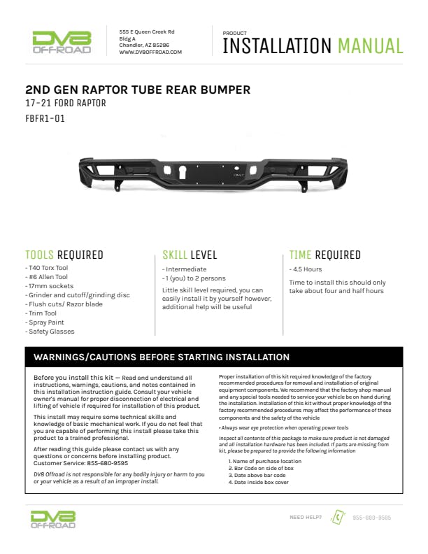 DV8 Offroad’s Raptor Tube Rear Bumper features a lightweight, low-profile build. Compatible with the factory hitch and includes welded zip-tie tabs for clean wiring. Supports (2) 3" pod lights but maintains a clean look without them. Direct bolt-on install with minor trimming. Finished in a micro-texture black powder coat.
