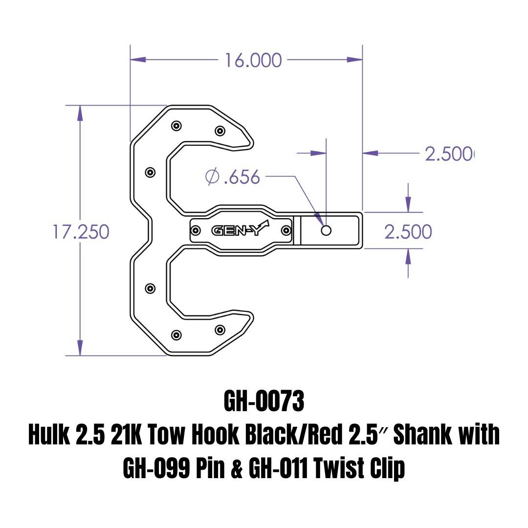 Hulk 2.5 21K Tow Hook Black/Red 2.5" Shank with GH-099 Pin & GH-011 Twist Clip