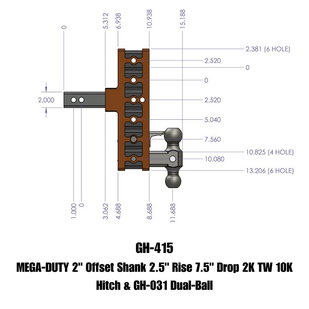 MEGA-DUTY 2" Offset Shank 2.5" Rise 7.5" Drop 2K TW 10K Hitch & GH-031 Dual-Ball